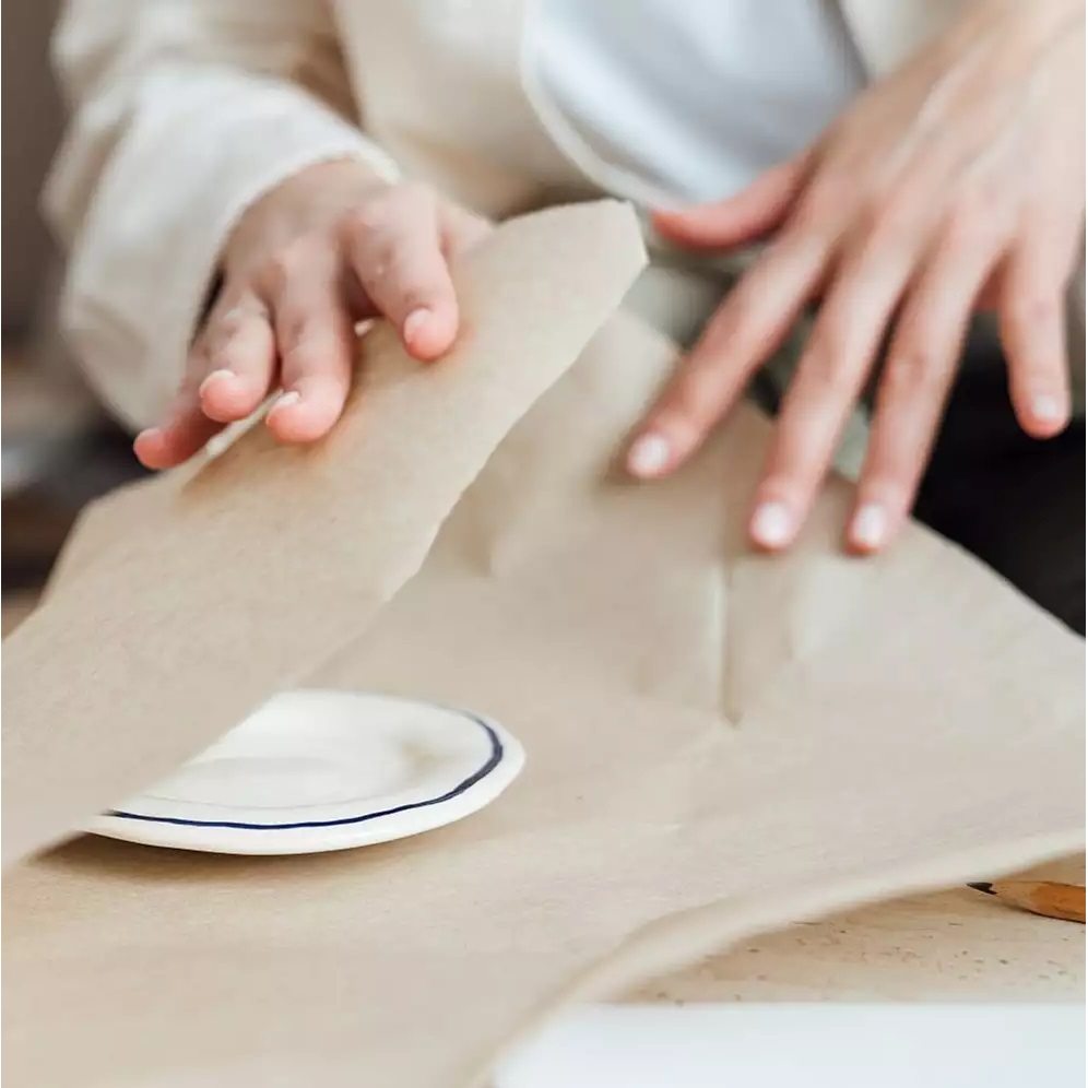 • بشقاب‌ها را یکی‌یکی با کاغذ بسته بندی کنید.